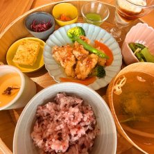 体にやさしい「おだしたっぷりのレシピ」を体験できるカフェで、umamito御膳の選べるおかず3種類中から、「鶏唐揚げの出汁あんかけ」をいただきました✨ だし屋工場直営店の自社農場や地元の旬の野菜を使用したお料理は、素材本来のうまみを引き出していて◎ だしパック「UMAMIだし」や炊き込みご飯の素、ご飯のお供、飲むおだし、ドレッシングやスープ・パスタソースも買うことができます 沢山の飲むおだしの試飲も嬉しい☺️ オーダーを受けて目の前で淹れる、日本初のハンドドリップだしも提供されてます♪