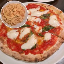 今日は旦那が1人で家族のところへ💨 朝、スーパーだけ行ってあとは強風のため引きこもり💦 でも温泉の入浴剤入れて、タンブラーにドリンク入れて(ソルティライチをお茶で割ったら美味しかった)長めにお風呂タイム楽しんだり、娘とシール帳やトランプしたり…楽しかった👍 旦那がまさかの早めに帰って来たから林の中にある素敵なお店へ💓 マルゲリータとエビのクリームパスタ💕 ピザはちょっと冷めてたし、パスタは美味しいけど期待以上ではなく、考え過ぎだとは思うけどなんか接客の感じとかからあまり歓迎されてないような気がした🤣