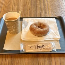 薪の香さんに明日のパンを買いに来てお店の2階にある喫茶スペースでドーナツをいただきました。