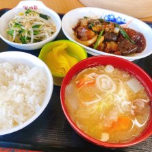 定食屋で昼ごはん🕛 火曜日はお昼ごはん、けっこう迷う。先週、あっ!ここあったと思い久しぶりに入る。この店舗は初めてだけど、別店舗には独身時代、時々行ってた。こちらはNHK📺72時間で放送された店舗。 🐽豚トロと茄子の炒めもの🍆インゲンと玉葱も結構入ってた。甜麺醤味かな? 🇰🇷ほうれん草ともやしのナムル*量も結構ある 🍚ご飯ちょい盛り(個人的には充分な量)小豚汁、沢庵 なんと、これで合計¥690-🫢 ずっと食べたいなぁと思っている中華飯もあったから、また来よう😆