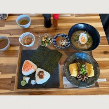 贅沢むすび定食 鮭むすびと梅むすび 豚汁 だし巻き玉子 小鉢