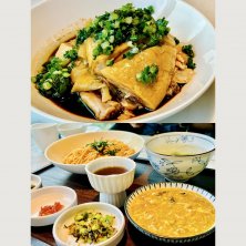 13:30 昼食☀️ 上海蟹味噌の混ぜ麺、鶏(葱油鸡) 江南鳳 上海小馆