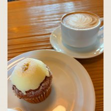 キャロットケーキとカフェラテ カップケーキのキャロットケーキとは珍しい😘 🥕が千切りになっていて、存在感がありました😋 この前の道は時々通りますが、外観がクールな印象で飲食店とは気づきませんでした。 外が急にうるさくなり、凄い爆音で‼️何の音‼️ 他のお客さんも辺りを見回していて 怖い😨と思ったら、ブルーインパルスが飛んで行きました✈️🛫 よく見たら、田んぼを挟んで航空自衛隊の隣りで🥹 近所の方たちは慣れているのでしょうが、私達にあの突然の爆音は衝撃でした🫨