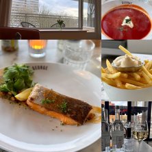 会社に行って鍵を受け取って晴れてアパートに住み始めました。チューリップ買ってみた。 という言い訳でスーツケース空けてたら時間無くなったのでレストラン。買出しも兼ねて。 熱々トマトスープとサーモンのグリル、misoソース。あとフライ。美味しかったのでまた来る。