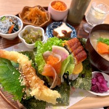 はな寿司御膳 お寿司は 海老天 サーモン 鰻にしたよ ୧(๑❛ั︎⌔︎❛ั︎๑)୨ ॢ♪✧✨♡ 野菜たっぷりでどれも 美味しいなぁ