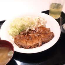 本日のランチ🍚 ちょっと前まで唐揚げ屋さんだったところがとんかつ屋になっていたので、ポークソテー定食をいただきました🐷 お水はセルフで、冷たいお茶とかレモン水にも出来ます。 豚肉って美味しいよね🐷