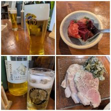 3月19日 広島に帰ってきた夫と待ち合わせて仕事終わりに横川飲みです ビールで乾杯 若竹煮は写真撮り忘れ サービスで出していただいたマグロのスキミ 2杯目は目の前に置かれてたジャスミンハイボール 自家製ロースハム 立ち呑み屋さんだけど奥には椅子の席もありました 料理が美味しい!
