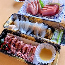 岸壁スペシャル 鰯フライ、アジフライ、すり身揚げ、お刺身色々、つみれ汁など アジが分厚くて美味しかった!