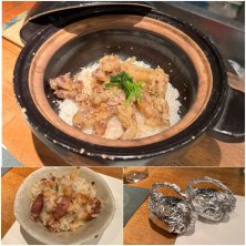 〆の土鍋ごはんはホタルイカと菜の花🍚 フリットみたいに揚げてあって 混ぜると美味しい!1膳だけ食べて、 残りはおにぎりにしてもらった