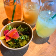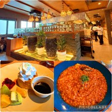 待合もおしゃれ✨ すごい混んでる!! 予約して良かった🥳 たっぷりモッツァレラとナスのミートソースリゾット 濃厚マスカルポーネチーズプリン ドリンクバーも種類豊富🥭🍇🍎🍑 またこよっと!!