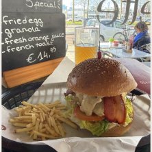 ハンバーガーとアッポージュース。 自家製らしく肉が詰まっててどっしりしてました。