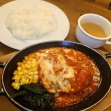 トマトチーズハンバーグランチ 久しぶりのオリーブの丘。 ランチのスープが美味しい〜 パスタよりライスが食べたくて、 ハンバーグ。美味しかった!