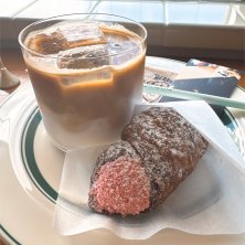 アイスカフェラテ コルネ ベリー コルネ?コロネ? 雑居ビルの2階のオシャレカフェー 出来たら自分で取りに行くのね。呼ばれたのに気づかず