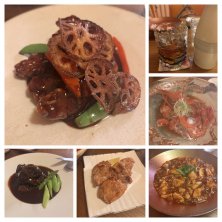 続き 紹興酒ロックで お刺身の金目鯛のカブト煮 あっさりと 麻婆豆腐 痺れる辛さです ブラボーチキン 葉山牛の角煮 黒酢の酢豚