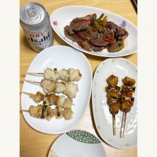 帰りはバス&電車を乗り継いで帰って来たので、久しぶりに駅ナカのお店で焼鳥を買って帰りました。 仕方ないけど3種類、家族3人分買うと約1400円。高級品ですな! ハツはパプリカと炒めて、少しだけカラフルに。 お肉ばかりの夕飯になってしまいました〜