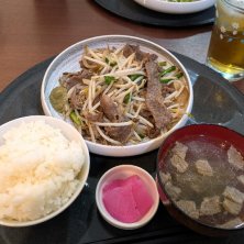 ランチ。 春休みの息子とご近所ランチ。 ポン酢焼肉定食 1300円 いい肉使ってる〜 ごちそうさまでした。