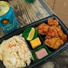 お花見🌸 若鶏の唐揚げ弁当🍱筍ごはん変更 SAPPORO EXTRA Feel 🍺