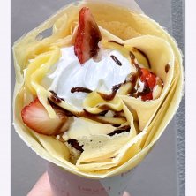 大阪府、東京都と埼玉県に4店舗有るクレープとジェラートの店、クレープ&ジェラート oeuf(ウッフ)のストロベリーショコラカスタード。クレープ生地の中にたっぷり入ったホイップクリームとカスタードクリーム、チョコレートソースと苺が入ったクレープ。同じフードコート内に有る牛角焼肉食堂での食事後、甘い物が食べたくなったのと見た事の無い店舗で気になったんで、寄って食べてみた。クリームがたっぷりと入ってて美味かった。閉店ギリギリで買う事が出来た。