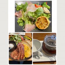 朝から行きました〜 まずは、モーニングのセット😍 ソーセージ🌭とスクランブルエッグ🥚とサラダとパンとホットティー パンがサクサクで旨し! ランチは、生ハムのジェノベーゼ レモン🍋を絞ってかけます。 美味しくてペロリ😋