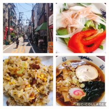 陸の孤島シリーズ 昨日は神谷銀座 赤羽 志茂 東十条の三角地帯の真ん中に位置する商店街へ それぞれから徒歩15分 地元民かよほどの商店街好きでなければ辿り着かないエリア 王子駅裏の昼呑みおでん店平澤かまぼこの本店と北区の名品と呼ばれているメンチカツが人気の肉のヤマチクがある そんな中に唯一の町中華でラーメン半炒飯 サラダ付き860円 年配の女将がワンオペで10分 昼どきながら客は自分ら父子とガテン系の親方一人 味は昭和の味わいだがやや薄い
