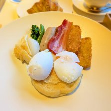 アメリカンブレックファースト ポーチドエッグ🐣🐷🥓🥦🍄🍟