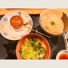牛すじどて煮丼 わかめ味噌汁 味噌串カツ