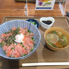あぶりニジマス丼にひっつみ汁付き ニジマスのボリューム凄かった