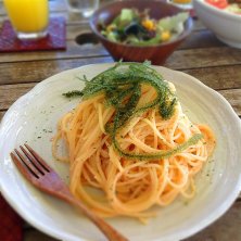 海ぶどうと明太子の和風パスタ大盛り ¥900 海ぶどうのプチプチが良いアクセントでおいすぃ!