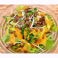麺(うどん)におやつと称する小鉢またはデザートが2つとお茶がついて1,200円くらいから、みたいなうどん屋さん。トマトとバジルとじゃこ載せてたまねぎドレッシングかけたやつ。おいしい。