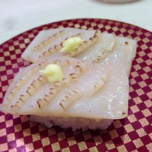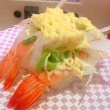 えびアボカド。残念ながらチューブタイプ。くら寿司もスシロー真似して生タイプに改善したのに、これは残念。