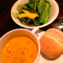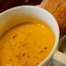 ランチのかぼちゃスープ☆コクはあるけど、さらりとして美味しい♡ついてきたパンもなんかカワイイ!