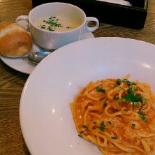 休日ランチ♪ 小えびとリコッタチーズのトマトクリームパスタ☆ 毎日休日だったらいいのにー笑