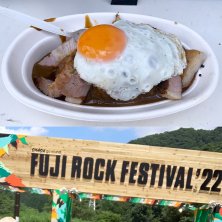 豚ステーキカレー 目玉焼きのせ@「ブタとエスプレッソと」!フジロックでの第一飯はオレンジカフェにある屋台で買ってみたら案外と大正解。分厚くボリューミーなトンテキが乗ったカレーはルゥがフルーティで美味しい。らっきょがあれば完璧。イエイ!
