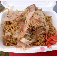 九条ネギ焼きそば!フジロック第三飯は京都のバー万屋が作っている焼きそばを食べてみた。九条ネギは探さないと気づかないくらいだが、ポークがたくさん入っていたからお腹は満たされました。イエイ!