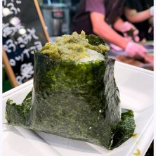 おむすび(ふきみそ)@おにぎり処ゆた!フジロック第三飯はオアシスでおにぎり。魚沼産コシヒカリを謳っているおむすびを注文を受けてから握るのにひかれたが、うーむ。うちで買ってる魚沼産コシヒカリの方が美味しいし、海苔が安物。期待値高かったせいか、ガッカリした。でも2019年以来のフジロックはエモいし、楽しい!イエイ!