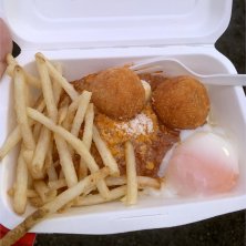 ボロネーゼスバ、ライスコロッケとフライ!フジロック第二飯は麻布ラパスタイオーネのパスタ。フライがニンニク効いていて美味しかった。ライスコロッケもあったかくてちゃんと中のチーズが溶ろけた。パスタは生麺ですが、ソースはイマイチ。ま。エネルギー補充にはなったかな。イエイ!