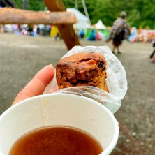 ホットアップルジュースとルヴァンのスコーン 雨の中