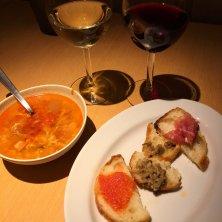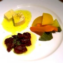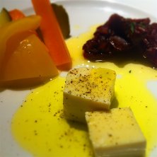 開店直後から気になっていたお店ですが、いつか行こうと思っているうちにもうじき一周年とか。今日、やっと初来店です。 写真は 豆腐チーズ、ピクルス、ドライトマト