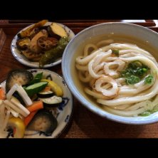 本日、焼き野菜にソラマメ入り! 皮ごと焼いてるから甘みすごーい。きんかん焼いたのとか初めて食べた! おうどんは言うまでもなく最高なんだけど、ここは、ご飯と野菜の小皿ですよ。今日はご飯もサラダも筍。しあわせランチ。