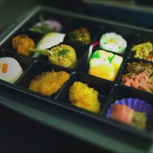西から東に食べて行くw 白身魚の明太子焼き(福岡)→牡蠣フライ(広島)→ぼっかけ焼きそば(神戸)→たこ焼き(大阪)→じゃこ黒七味焼きむすび(京都)→味噌カツ(名古屋)→野沢菜ご飯(長野)→