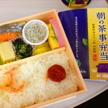 朝の茶事弁当、だって! はじめて見た。JRの駅で売ってる朝の茶事と同じく、谷川連峰の天然水で炊いたご飯が売りな様子。あっさりなおかず、ローカロリーが嬉しい。ということで始発で山形戻りますー。