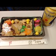 松茸弁当とプレモル♩ 新幹線で頂くお弁当とプレモルが最高〜(*^o^*) ダイマル?とかいう東京駅のデパートで買った(^o^)/いつもは適当に買ってたけど、ググってみた(^ν^) プレモルは無料(^ν^)