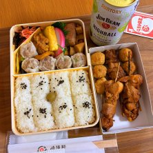 東京駅よくばりセット 崎陽軒の焼売弁当と国技館のやきとり さめうまセットでもありますな この2つがあれば他に何もいらない 男子バスケ見ながらアップルハイボールとともにいただきます! 夏休みばんざい🙌