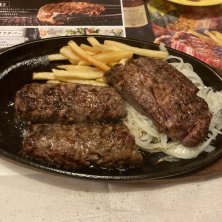 早めの夕ごはんー♪ 最近密かに自分の胃袋チェックをしてるのですが、やっぱり小さくなった! すぐお腹いっぱいなっちゃう(´・_・`) がんこハンバーグとカットステーキ♡ ステーキは半分あげました(^^)