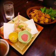 今日は久しぶりに、温泉に♪ マッサージの前に先に食事♪ ジャーマンポテト タコの天ぷら