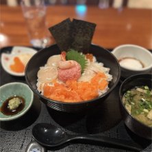 先月の話ですが、、、 ディズニーランドの北斎にて。 夏期限定の和食膳。 海鮮丼をお出汁でも戴ける趣向でした。 限定のお箸付で美味しかったです♪