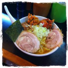 ラーメンの上に上海蟹が一匹乗ってますぞ〜な、一条流がんこラーメン総本家で上海蟹の塩ラーメンなう。美味いよ!