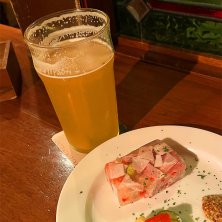 ワイマーケットブルーイング Mosaic VibesⅡ モザイク特有のブルーベリーやパパイヤ、シトラスが組み合わさったようなアロマフレーバー。ボディはライトで苦みキリっとクリーン。後味さっぱりでゴクゴク飲めてしまいます。優等生のような、スッとキレイなIPA(お店の能書そのままw) 食事は自家製ロースハムのゼリー寄せ。これまた美味い!