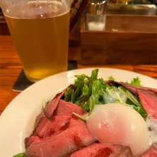 今日のゲストビールは ディスタント・ショアーズ・ブルーイングトロピカル パラダイス -マンゴーブースト- だそうな。東村山のビールということで、馴染みあるし飲まねば。 お皿はローストビーフと半熟卵のサラダ。 これから車のローン払うし節約しないとなーって思うけど、こういうのはやめられないなーww(おい)