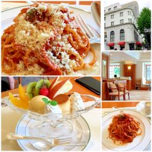 横浜の老舗ホテルニューグランドでのランチ! 1人でこの値段を払って入る事はまずないだろうと思うリストランテのランチ! パスタは冷製カッペリーニ、ローストビーフ、バルマソーセージなど! 今日はご馳走になりました😀